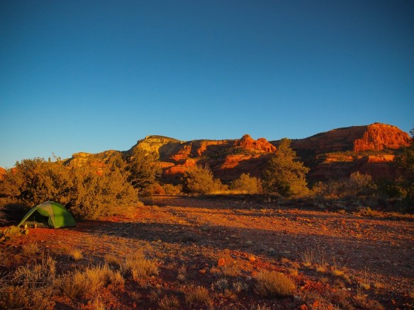 The best legal camping I found was recommended to me by the folks at Over The Edge Sports, the local bike shop. Take Dry Creek Rd.north out of town, Left on Boynton Pass Rd., another Left at the stop sign to stay on Boynton Pass Rd, continue on the road as it turns into a dirt road. There is a trailhead on the left just before the pavement to dirt switch with a bathroom and heading down the old road at the pull off on the left just after the road turns to dirt has some great spots with early sun. This is the closest camping to town with red rock views, and close to some awesome trails.