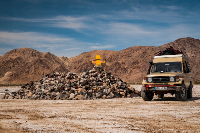 Travelers Monument on Dry Soda Lake