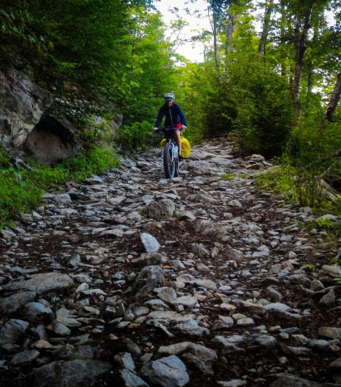 • Second – gear: Less is better- much better. This is not a dirt road ride, along with rocks, roots, and steep climbs, there’s some pushing. You can see what I carried over HERE. Jeff ran rear panniers and even with extra straps to keep things from bouncing, ended up breaking his Surly Nice Rack.