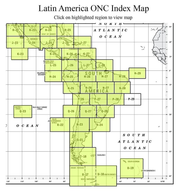 While searching for maps to guide my way through Latin America I came across the website for The University of Texas at Austin Perry-Castañeda Library Map Collection. This site is a treasure trove of navigational information and one of the best map collections I found pertaining to Latin America is the Operational Navigation Chart Series. These are aeronautical charts at a scale of 1:1,000,000 showing topographic features by shaded relief and 1,000 foot contouring. The one issue I found is these maps were saved as JPEG images, but for maximum clarity and ease of working with I prefer PDF files, so I downloaded all of the maps, converted them to PDF and have made them available for download below. Even when zoomed to 800% the maps are still clear and usable on my iPod Touch.