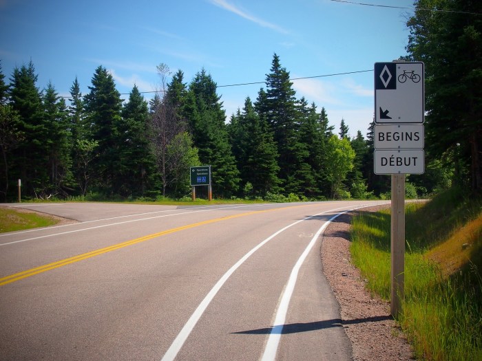 It’s quite a ways between Corner Brook and the ferry, so I didn’t think most locals would travel that distance. I had already made a sign indicating my desire for a ride to Port aux Basque at the visitor information center, the same visitor information center I made my sign for a ride to Gros Morne. The wind was blowing pretty hard out of the south, so my hope was a tourist with a pickup truck would take pity on me, but really I was OK with going anywhere, as long as it was south of where I was. I looked at my map, rode to the southernmost entrance to the TCH from Corner Brook, took my position and it wasn’t long before I saw brake lights and vehicle pulling to the shoulder. My ride wasn’t a tourist, but a local couple from the Codroy Valley and happened to live just down the road from the convenience store I destroyed the chocolate cake at. This ride couldn’t have been more perfect. The Codroy Valley is a beautiful place and I really wanted to see it, but with the weather I had on the way north it was practically invisible. With, once again, the most unbelievable Newfoundland hospitality, I was driven to their house, fed an unbelievable dinner, given directions to the best views of the valley and an offer to stay the night. Having gone through the area before I had a camping spot I really wanted to stay at, so after some great conversation and viewing some photos of what I could expect to see the next day, I was off on the T’Railway.
