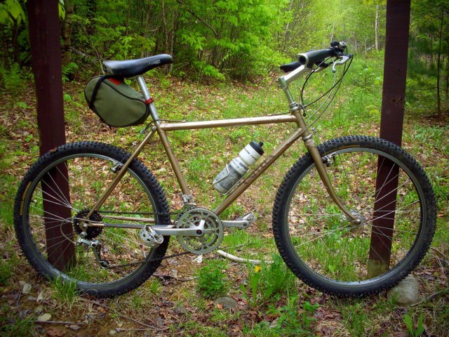 The time machine, a 100% original classic Craigslist find. I replaced a few parts for fit and comfort, but it still rides like the classic mountain bike of yesteryear.